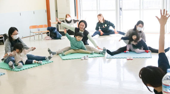 体験会の様子です。恐る恐る様子を見ていた子どもたちも、先生のやさしい声掛けで楽しそうに身体を動かしはじめました。保護者の方にも好評でした。
